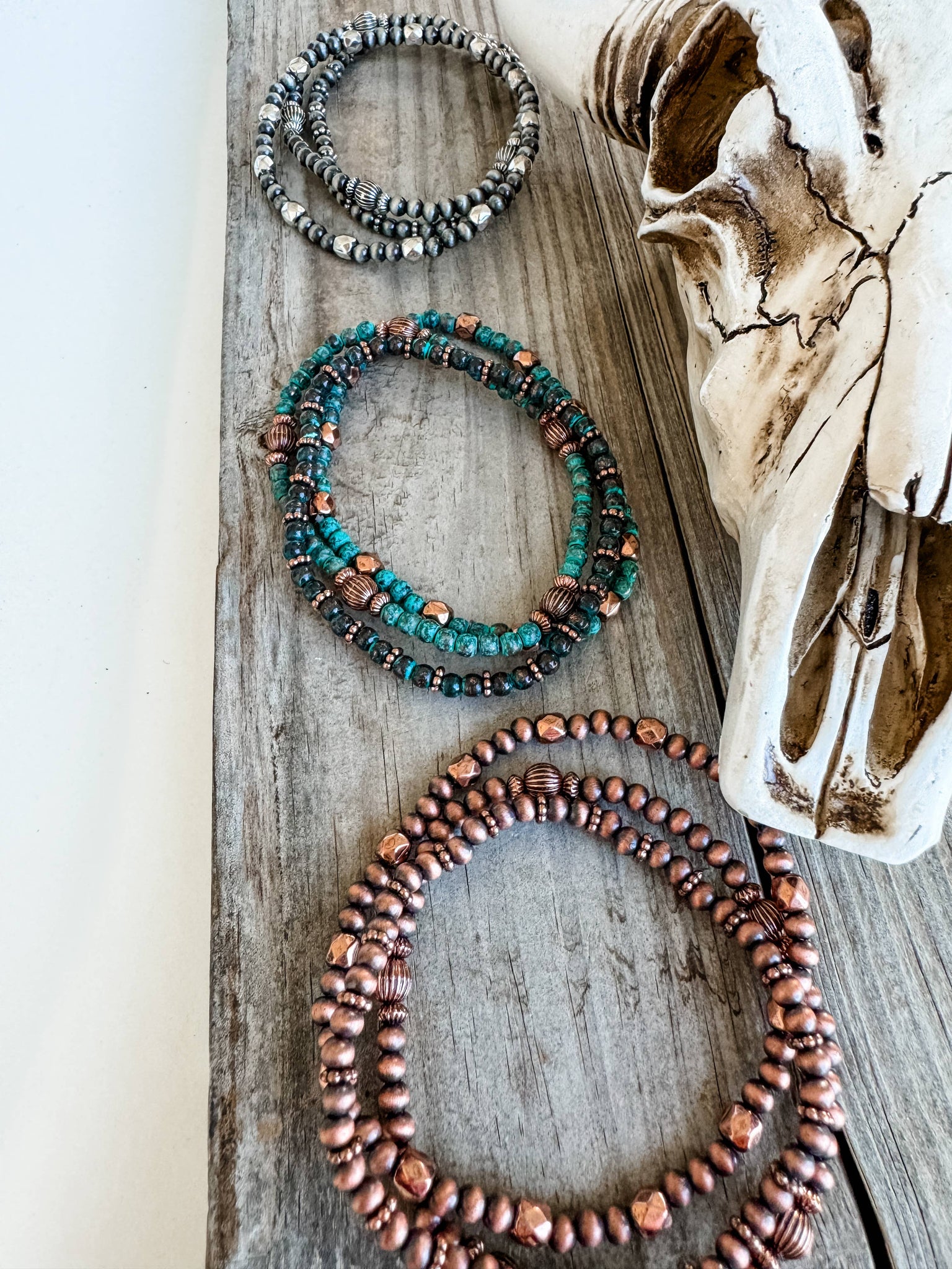 Navajo Style Pearl Stackable Bracelets - stretch