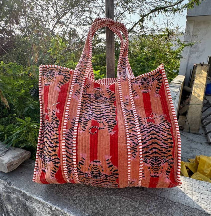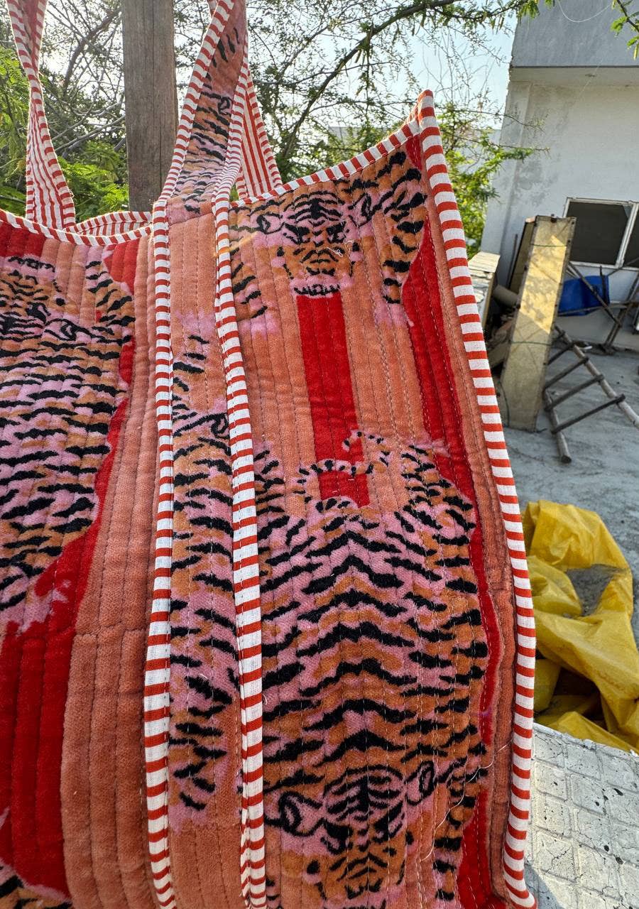 Velvet quilted travel bag made by Indian Artisans, This Velvet quilted shopping bag is totally unique and multi purpose. Use this for your grocery or as a travel bag. Perfect to suit everyone.