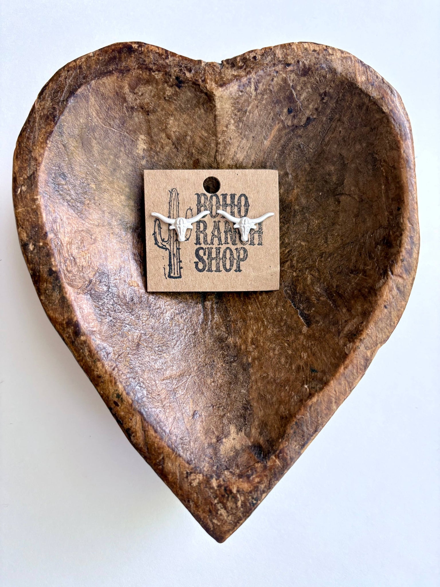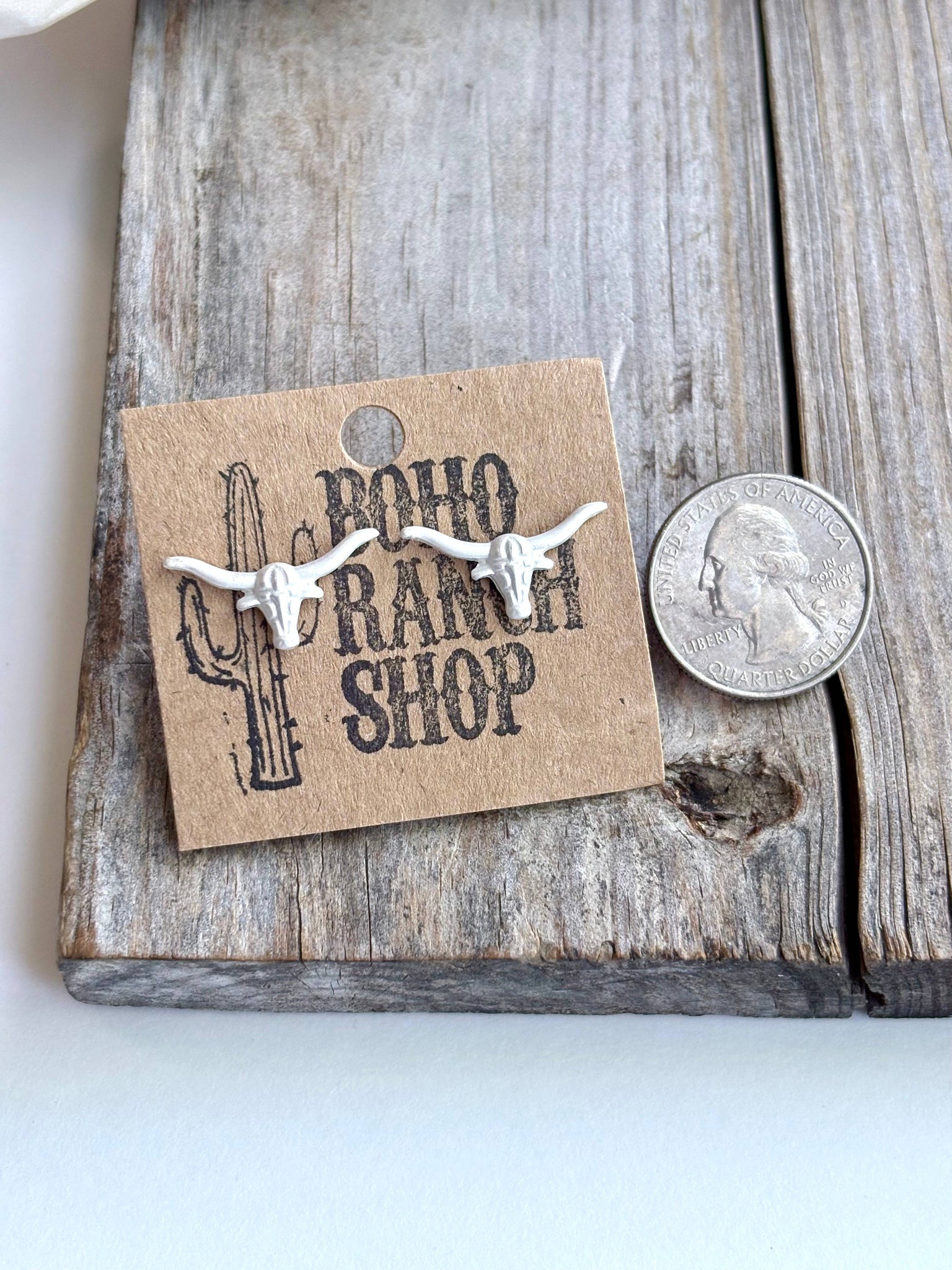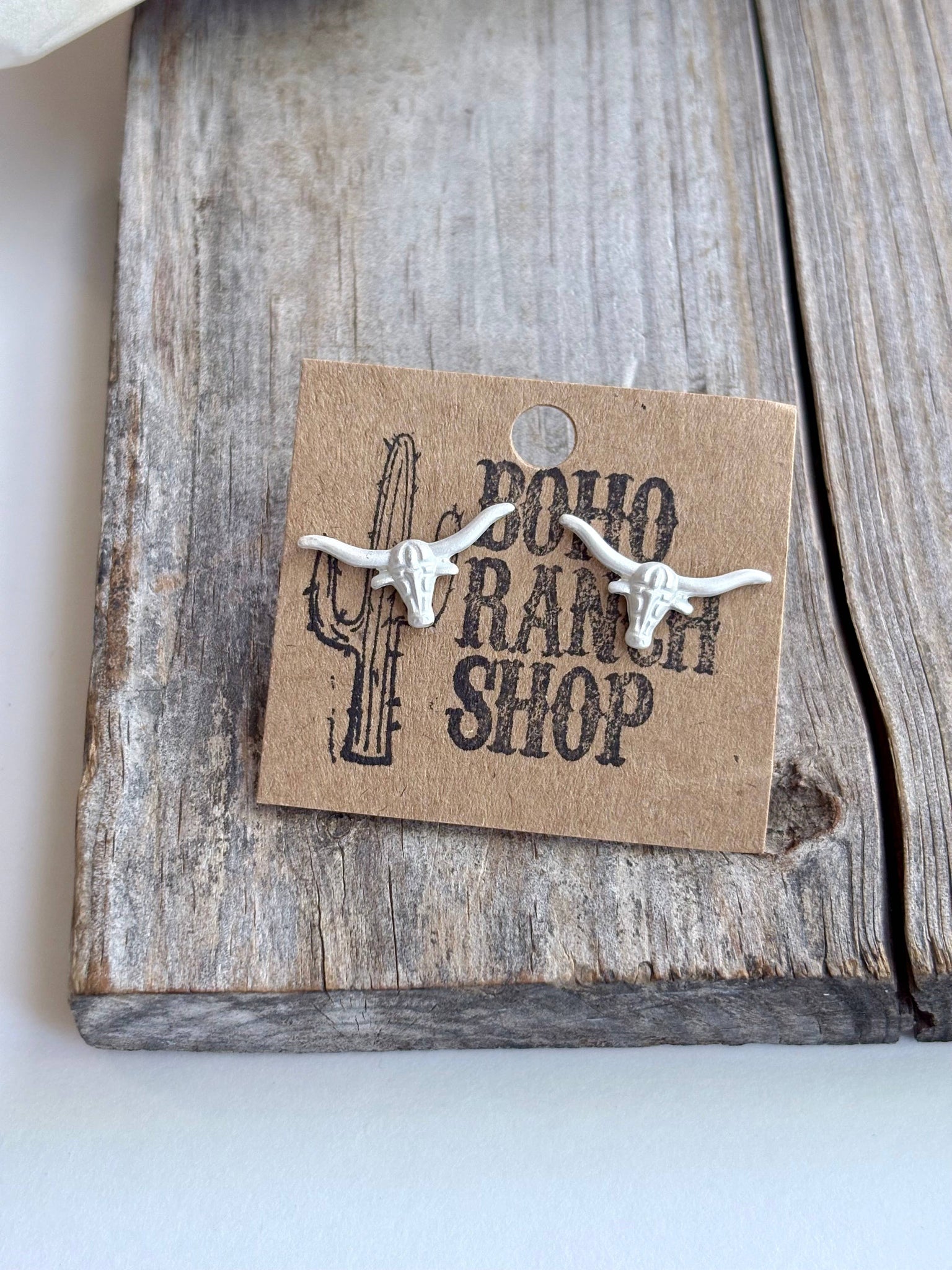 Western Theme Stud Earrings Steerhead, Horseshoes Size: 0.5" Post Back Metal Silver, Stone, Turquoise Stone Lead Compliant