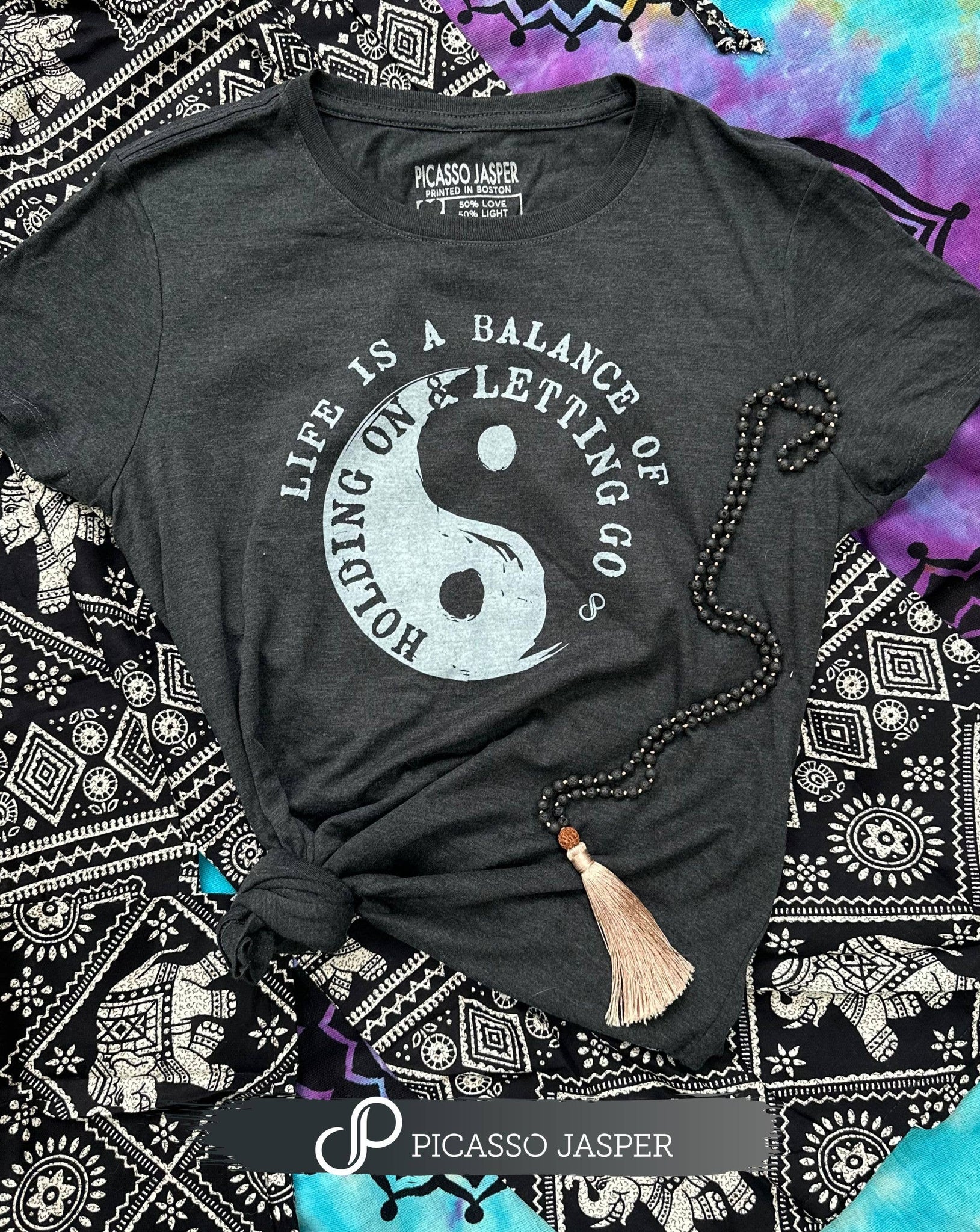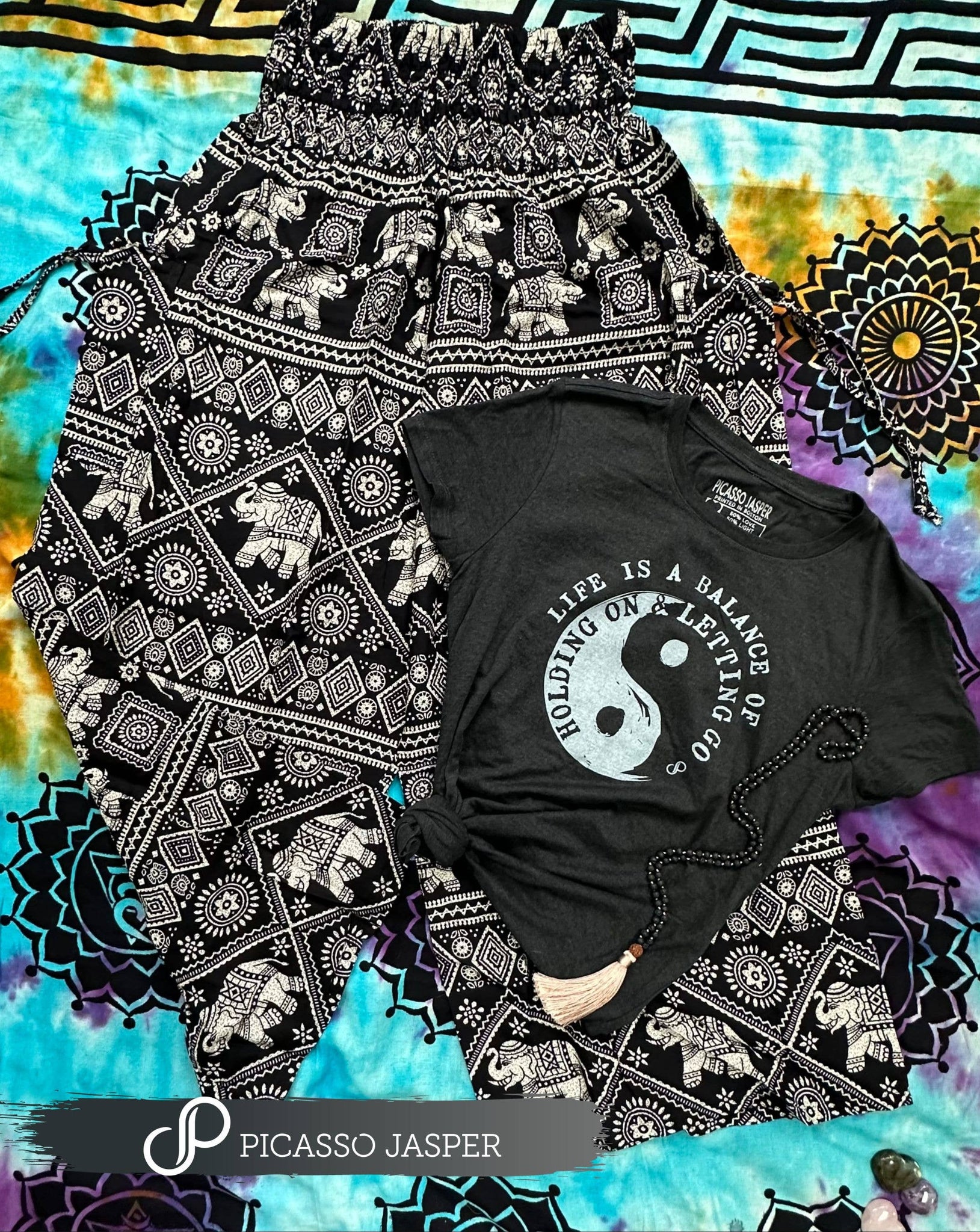 NOTE: Crystals & accessories sold separately. This is just to demonstrate how to merchandise the tee. Add a mala & pants to create a look!